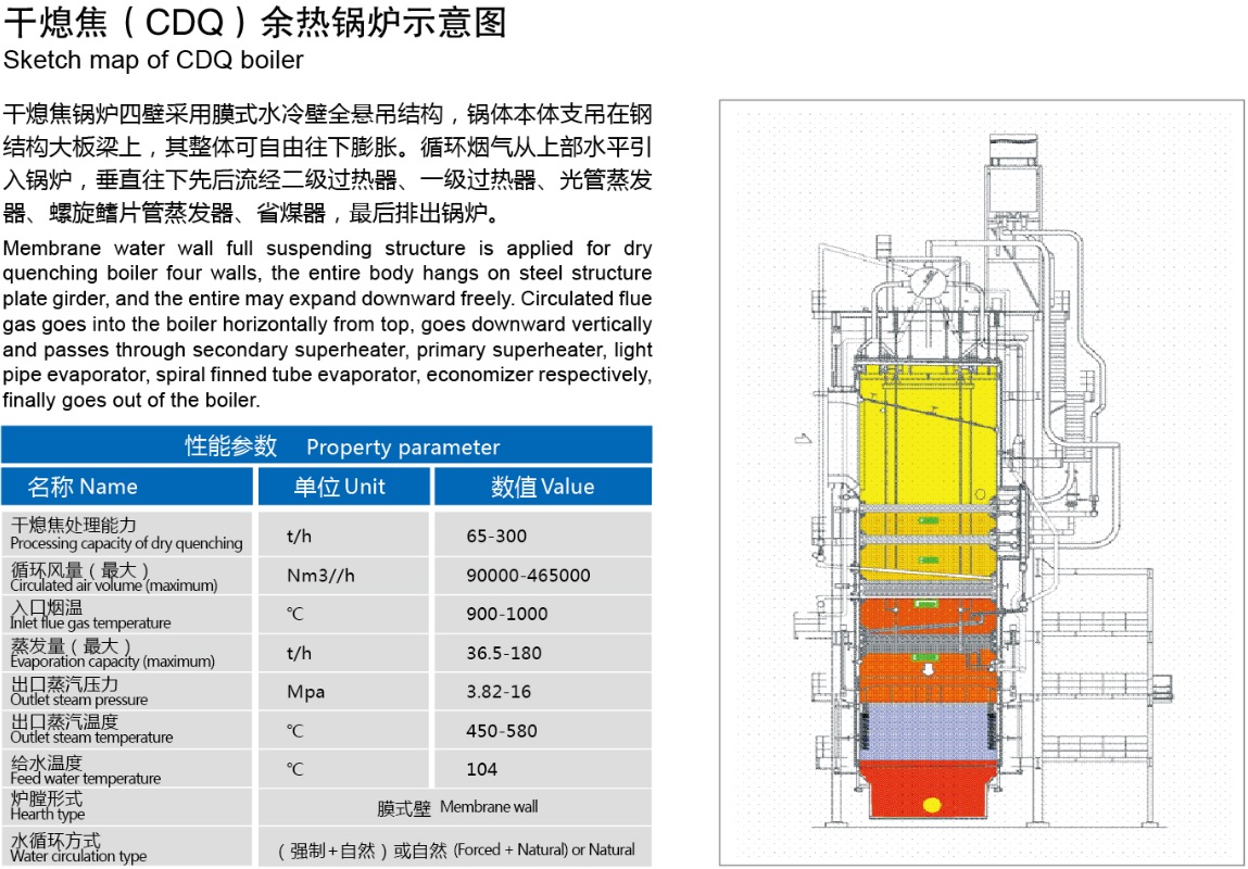 公司干熄焦余熱鍋爐產品在吸收國外先進技術和經驗基礎上,結合我國具體實際,在設計、工藝、材料、制造及檢驗等環節嚴格控制,對鍋爐中最薄弱的環節采取特殊防護措施,以最大限度提高鍋爐熱效率和使用壽命;公司研制的高溫高壓干熄焦余熱鍋爐被列入國家863計劃、國家火炬計劃和江蘇省科技成果轉化專項資金扶持,項目研究成果榮獲國家科技進步二等獎、中國冶金科學技術獎一等獎;同時高溫高壓干熄焦余熱鍋爐被列入國家重點新產品和省高新技術產品,突破了余熱鍋爐防腐、密封、防膨脹等多項專利技術,同時參與了YB/T 4255-2012《干熄焦節能技術規范》行業技術標準的制定;通過技術專利化、專利標準化戰略,構筑產品市場核心競爭力。